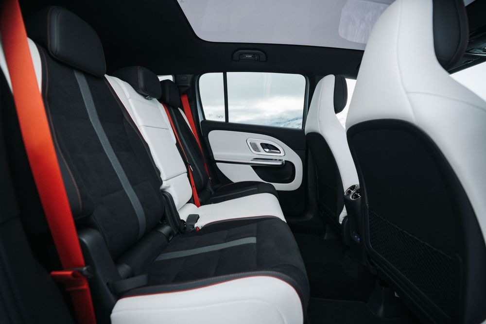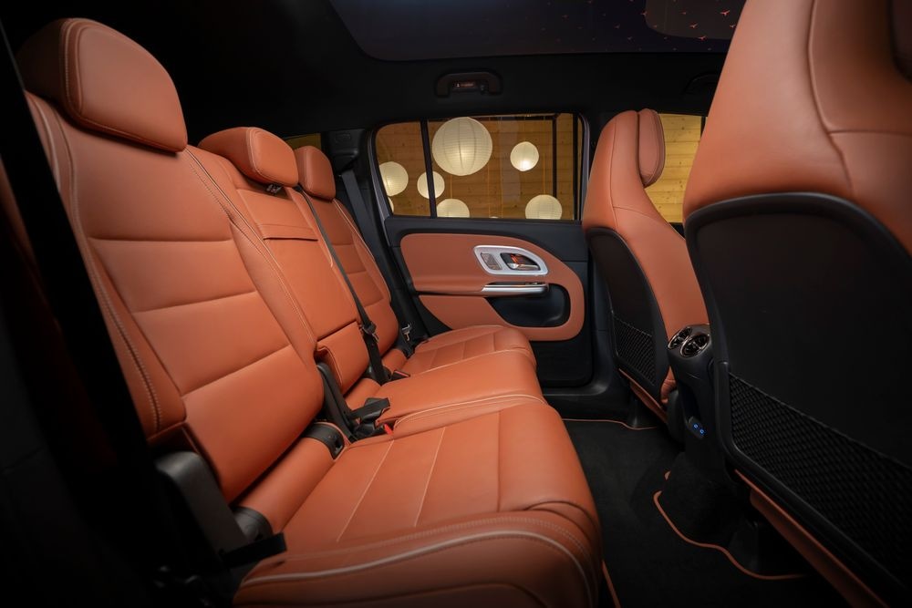 Nový model GLB je k dispozici jako pětimístný nebo sedmimístný vůz s podélně nastavitelnou lavicí ve druhé řadě. Ve srovnání se svým předchůdcem nabízí nové, plně elektrické GLB znatelné zvětšení prostoru nad hlavou v prvních dvou řadách sedadel, a to díky linii střechy SUV a standardně dodávanému panoramatickému oknu. Cestující vzadu si mohou užít také více prostoru pro nohy. Pohodlí sedadel ve druhé řadě bylo znatelně vylepšeno, mimo jiné díky delší opoře stehen.